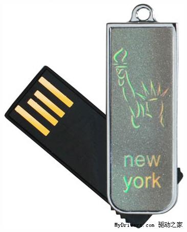 此次發布的U盤大小為40 x 14 x 5 mm,外部標有自由女神圖像,采用USB 2.0/1.1接口,傳輸速度30MB/s,其容量分為2GB、4GB、8GB和16GB四種,防水。