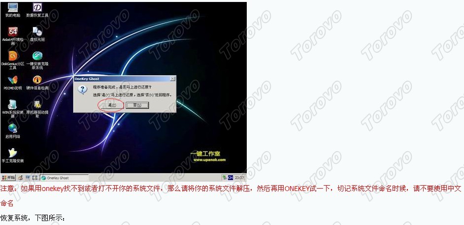 今天我選擇一個比較簡單的工具,用ONEKEY(一鍵安裝克隆版系統(tǒng))進(jìn)行恢復(fù)系統(tǒng)