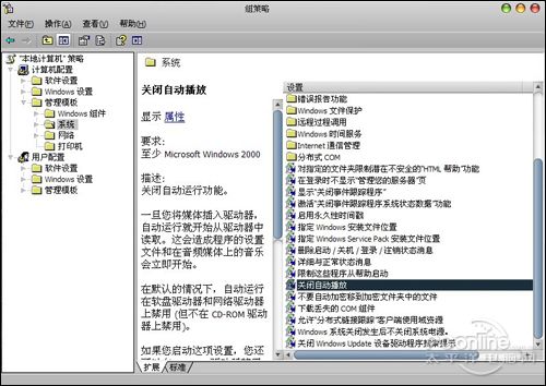 操作辦法:在Windows下單擊“開始”菜單→“運(yùn)行”命令,輸入“gpedit.msc”命令,進(jìn)入“組策略”窗口,展開左窗格的“本地計(jì)算機(jī)策略\計(jì)算機(jī)配置\管理模板\系統(tǒng)”項(xiàng),在右窗格的“設(shè)置”標(biāo)題下,雙擊“關(guān)閉自動(dòng)播放”進(jìn)行設(shè)置。