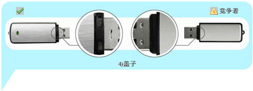 Chenge Tech CS系列U盤的主體有兩個突起來的部件是用來正好將蓋子固定住的.許多競爭者的各種型號的產品的蓋子都很松并且配合的并不好.