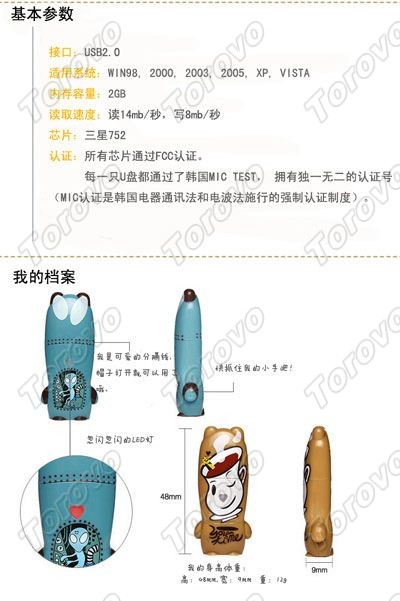 正益通卡通迷你娃娃系列U盤采用可愛卡通娃娃外形來涉及U盤,特別可愛! 時尚新穎,外觀靚麗,用來做廣告禮品,可以印刷公司LOGO及文字說明在U盤表面。