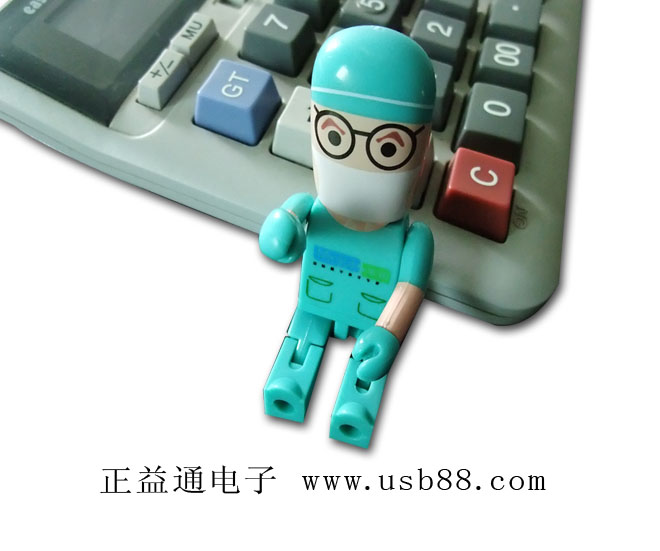 此款綠色醫(yī)生造型U盤除了最基本的功能外還能夠進(jìn)行關(guān)節(jié)活動(dòng),無聊的時(shí)候用來打發(fā)時(shí)間還是很有趣的。