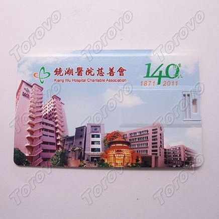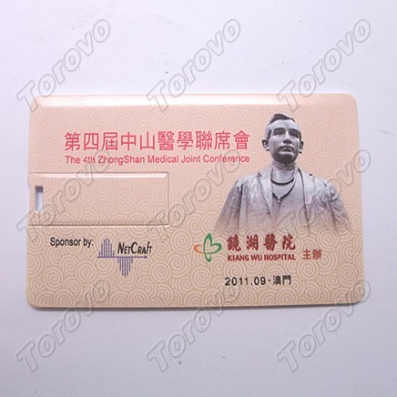 此款名片U盤是澳門鏡湖醫院慈善會定制,尺寸為是83*52*1.8mm,左右翻轉式卡片U盤,銀行卡大小,方便攜帶。卡片U盤可個性化設計,圖案自選。容量可以做到512M,1G,2G,4G,8G,16G。采用A級閃存芯片,數據存儲持久穩定。