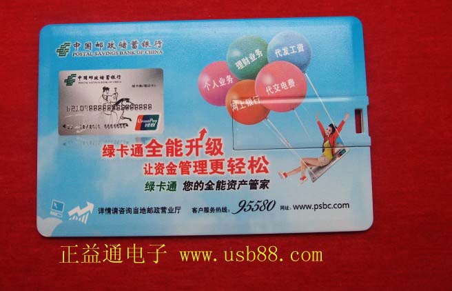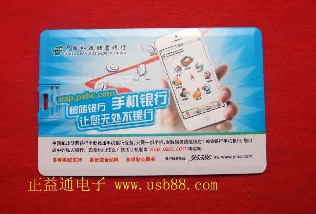 郵政儲蓄銀行委托我司定制卡式U盤. 深圳正益通U盤廠家(正益通禮品U盤公司)專業提供各種款式、材質的U盤定制,品質保證,量大優惠。業務聯系電話:0755-84524565. 13928466681 QQ
