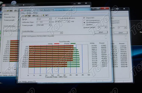 經(jīng)過性能測試,在USB2.0接口下也有40MB/s的表現(xiàn),而在USB3.0下使用ATTO則更是瘋狂。