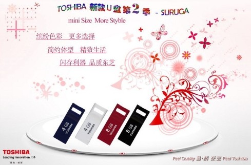 東芝 MINI系列U盤有4G/8G容量供大家選擇,4G為藍(lán)白兩色,8G則是紅黑兩色,外型小巧,精致美觀。