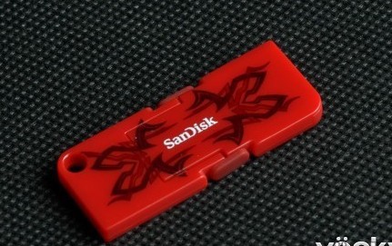 Sandisk Cruzer Pop酷型優盤采用了紅色作為主色調,折疊設計,正面印有Sandisk英文LOGO以及圖騰圖案,整體設計非常精巧。