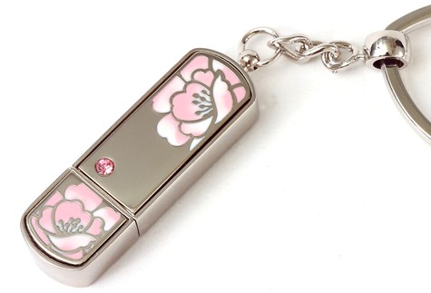 這款產品是集琺瑯彩、施華洛世奇水晶、鉑金等頂級生產工藝的藝術優盤。外觀精致,全國產品均運用了只有在奢侈品行業出現的琺瑯彩藝術工藝?,m瑯沒有掐絲,先用鏨刻、敲壓或腐蝕等技術制出凹槽圖案,然后填充琺瑯彩,并用大明火高溫燒制而成。此款藝術優盤表面刻畫了一朵朵開放的粉色玫瑰花圖案,清新單純。同時盤體鑲嵌的施華洛世奇水晶,浪漫氣息濃厚,凸顯產品的尊貴和高雅。