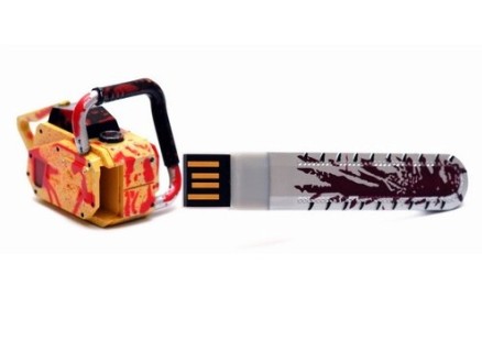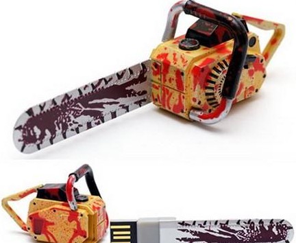 此款產(chǎn)品采用電鋸造型的盤身設(shè)計(jì),能夠大家?guī)硪曈X上的沖擊。此款產(chǎn)品的USB端口隱藏在電鋸端,取下即可。目前只有2G容量推出,售價(jià)為23.99美元。