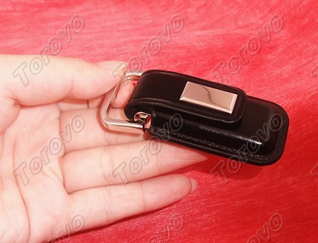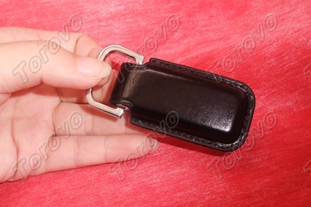 這款U盤整體是采用不銹鋼和皮革相結合的方式,皮革是在外部的材料上,U盤被黑色真皮包裹,皮套四周由一圈密實的尼龍線縫制,顯示出超酷的風格。U盤的頂部是不銹鋼鎖扣設計,方便將U盤串在鑰匙扣中隨身攜帶。這款U盤采用紐扣式蓋帽設計,這樣不僅美觀而且不易丟失,的確是一個實用的創新設計。
