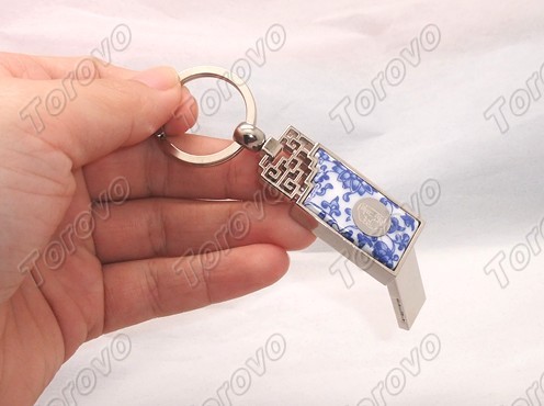 U盤工廠推出經典窗棱鏤空設計突顯中國特色文化內涵-青花瓷鑰匙扣U盤詳細參數