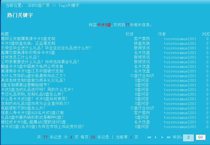 深圳正益通電子公司網(wǎng)站上U盤款式有幾千種,很多客戶在尋找U盤款式的時候不知道從哪找起,我們提供最簡單,最快捷的搜索服務(wù)。只要你隨意輸入你想要的關(guān)鍵詞和產(chǎn)品編號,然后按搜索鍵,即可搜索出你想要的東西。