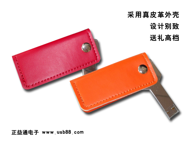 皮質外殼給里面的U盤提供保護作用,顏色搶眼。引人注目的設計使這款鑰匙U盤與眾不同,與主機連接部位不僅防水而且防劃傷,成為市場中最薄、最耐用的U盤之一。帶防護的連接部位確保永遠正確的使用(不會插反方向),始終可用而且安全。